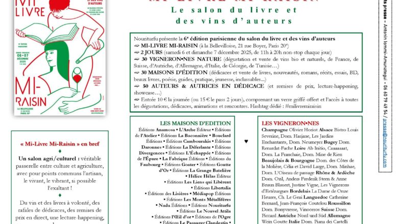 Après le village du livre de la fête de l’Humanité, je serais au salon du livre Mi-Livre Mi-Raisin à la Bellevilloise ce samedi en début d’après-midi. C’est la 6e édition parisienne du salon du livre et des vins d’auteurs. A quelques Lire plus …